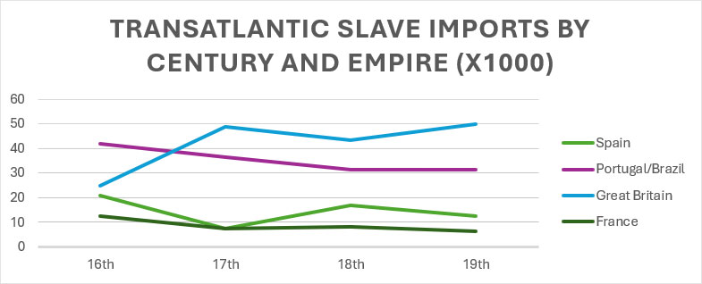 - Chronology and profit — While Spain imported moderate contingents over three centuries, Britain and France packed their ships in barely forty years to feed a more lucrative, brutal plantation capitalism. Once the market was saturated they led abolition and cast themselves as moral beacons—conveniently overlooking the fortunes already banked.
